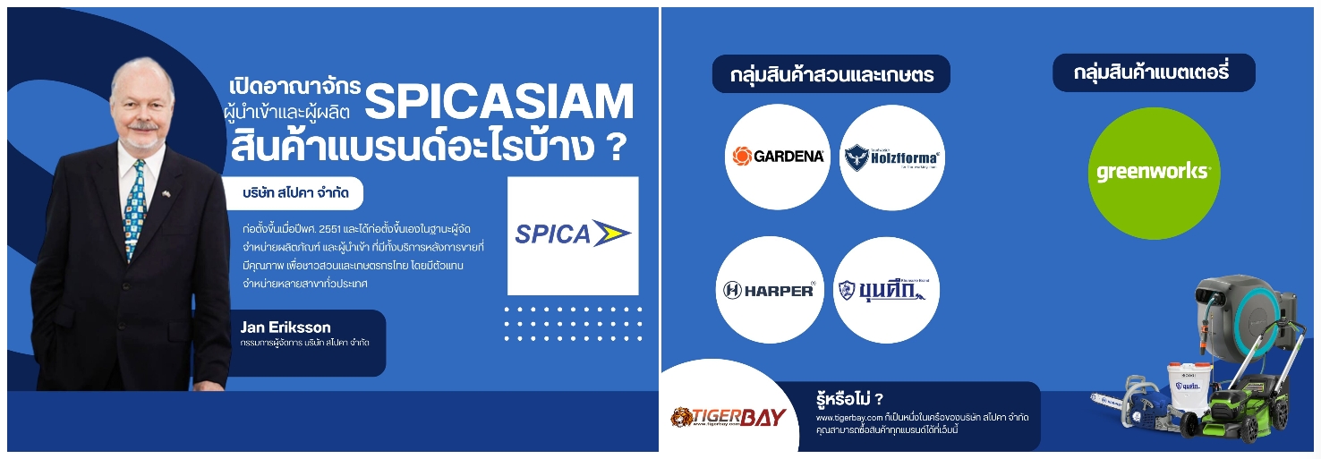 TigerBay (www.tigerbay.com) (เจ้าของเดียวกับบริษัท สไปคา จำกัด) ได้รับการจดทะเบียนพาณิชย์อิเล็กทรอนิกส์เรียบร้อยแล้ว จัดจำหน่ายอุปกรณ์ทางด้านการทำสวน เกษตรกรรม ป่าไม้ อุปกรณ์ก่อสร้าง เครื่องมือที่ใช้ในการตกแต่งบ้าน อุปกรณ์อิเลคโทรนิค และสินค้าเบ็ดเตล็ดผ่านทางอินเทอร์เน็ต
