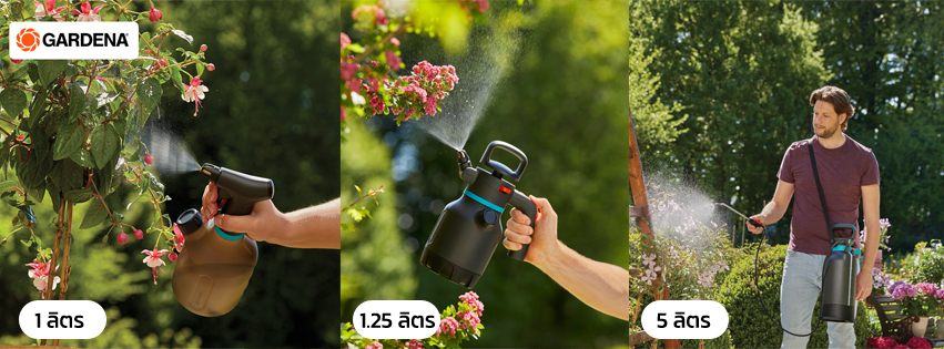 หากต้องการนำไปใช้งานกับไม้ดอกในสวนไม่ว่าจะเป็นต้นกุหลาบในสวนหน้าบ้าน หรือจะเป็นไม้ประดับ แนะนำเป็นถังพ่นยา GARDENA ที่สามารถฉีดพ่นใต้ใบได้อย่างดี และใช้งานได้อย่างดีเยี่ยม มีน้ำหนักเบาเหมาะสำหรับผู้หญิง โดยมีขนาดให้เลือกใช้ตั้งแต่ 1 ลิตร, 1.25 ลิตร และ 5 ลิตร