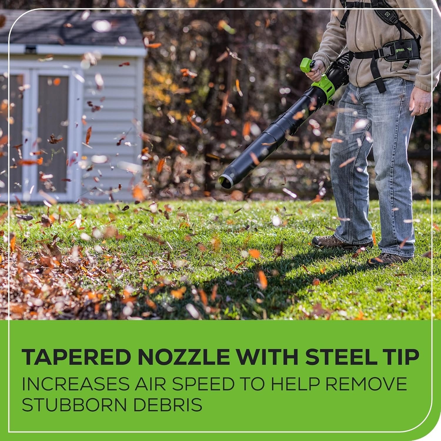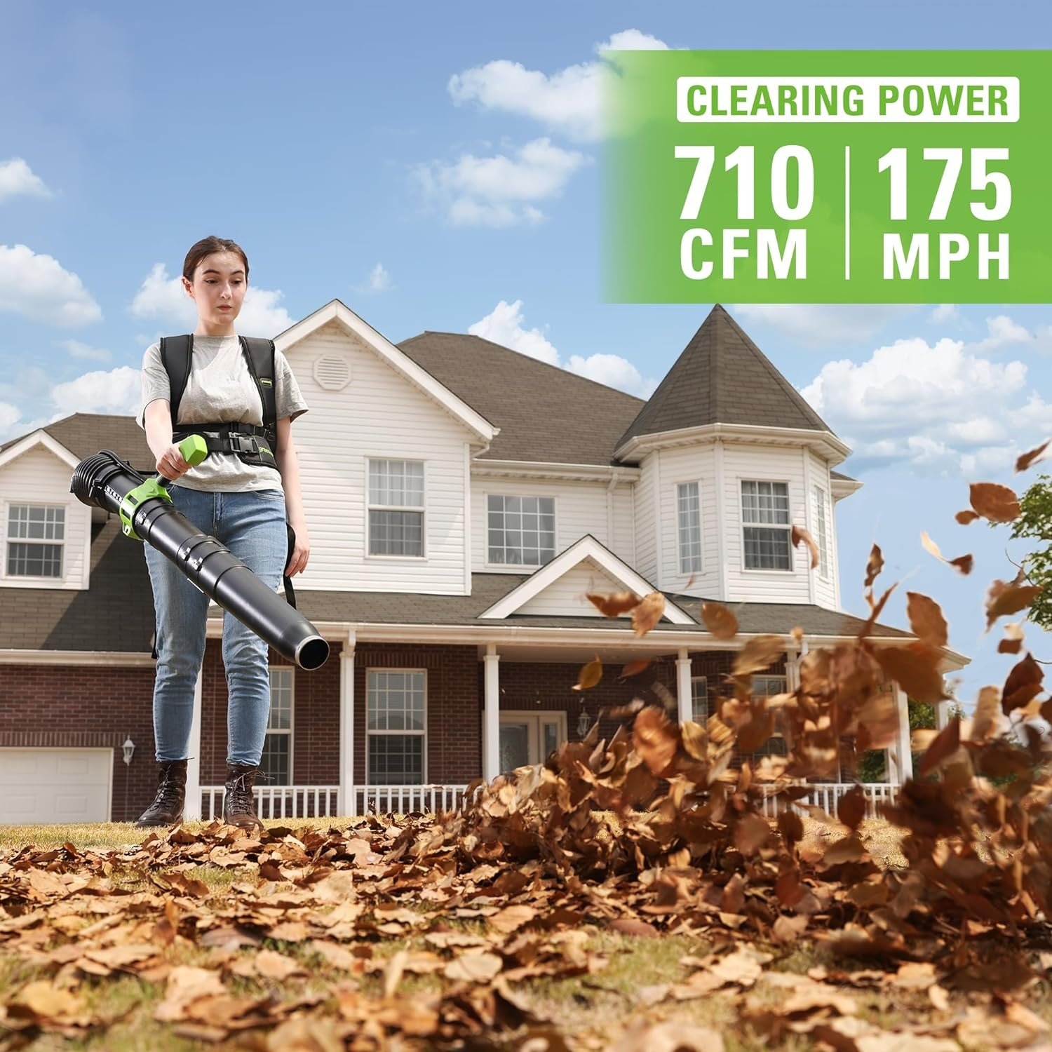 - แรงลมสูงสุด 175 ไมล์/ชม. ปริมาตรอากาศ 710 ลูกบาศก์ฟุต/นาที เป่าแรง เคลียร์งานได้รวดเร็ว