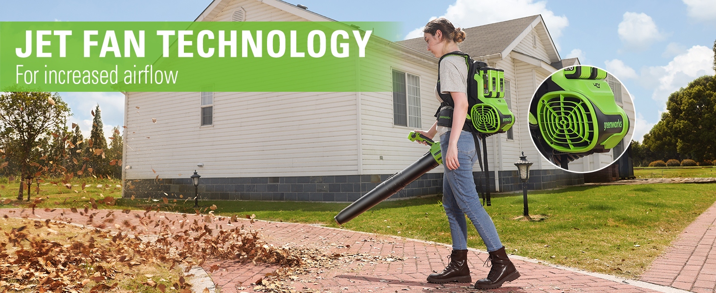 เครื่องเป่าลมสะพายหลัง Greenworks 40V แบบแบตเตอรี่ 2 ช่อง มาพร้อมมอเตอร์ไร้แปรงถ่าน ให้แรงลมสูงสุดถึง 710 ลูกบาศก์ฟุต/นาที